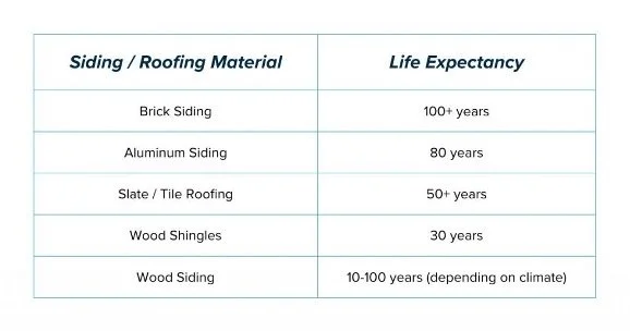 When choosing roofing and siding for your home, climate and maintenance level factor into the life expectancy of the material. However, brick siding and slate roofing are known to be dependable for decades.