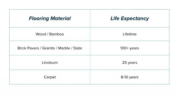 Flooring plays a major role in both the look and function of a home, but different materials have very different lifespans. High-traffic areas will naturally wear faster, while proper care and refinishing can extend the life of many surfaces. If you’re looking for longevity, wood floors are the way to go. Certain rooms in your home will be better suited for carpeting, but you can expect they’ll need replacing within a decade.